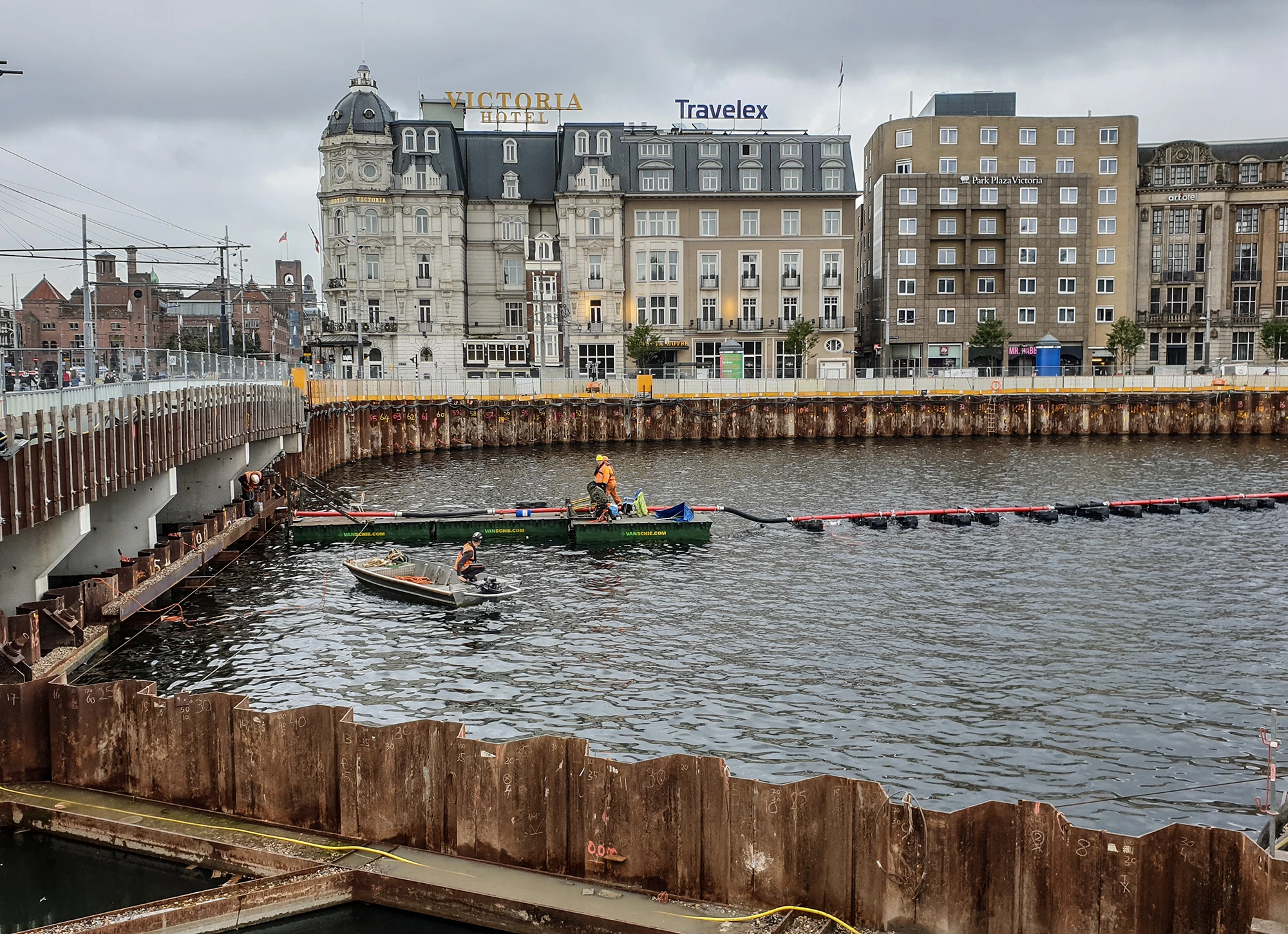 Al het zware materieel moest via het water worden aangevoerd, omdat er voor het stationsgebied geen zwaar verkeer was toegestaan. De combinatie van complexe logistiek en beperkte fysieke ruimte maakte het project extra uitdagend.
